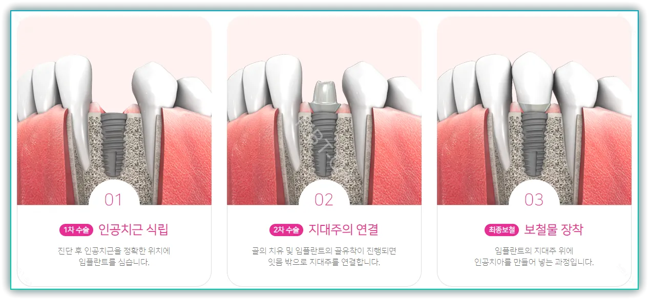 이전글에 임플란트 가격 비교 방법, 수술 후 부작용 및 관리법 등에 대한 글들이 있으니 읽어보시고 도움이 되시기 바랍니다.