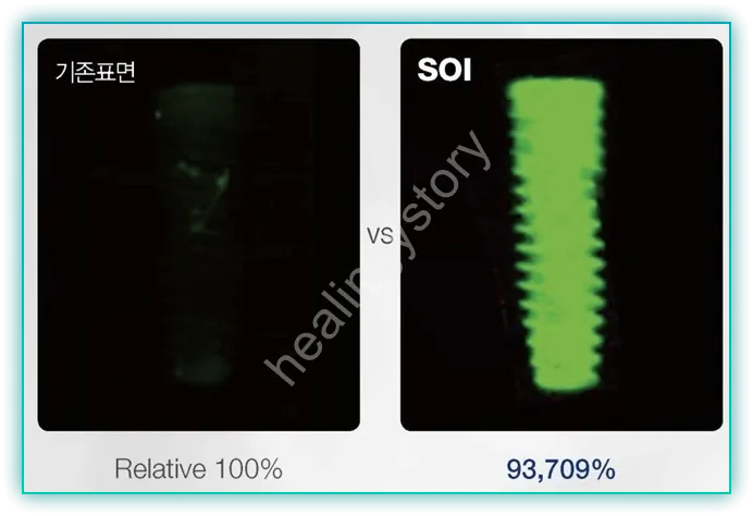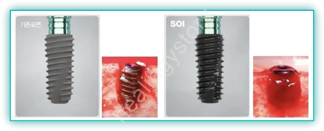 SOI는 BA와 비슷한 성능을 제공하지만, 보다 향상된 골형성 단백질 부착과 고정력을 자랑합니다. 이러한 성능 덕분에 기존 임플란트보다 치료 기간이 짧고 안정성이 높습니다